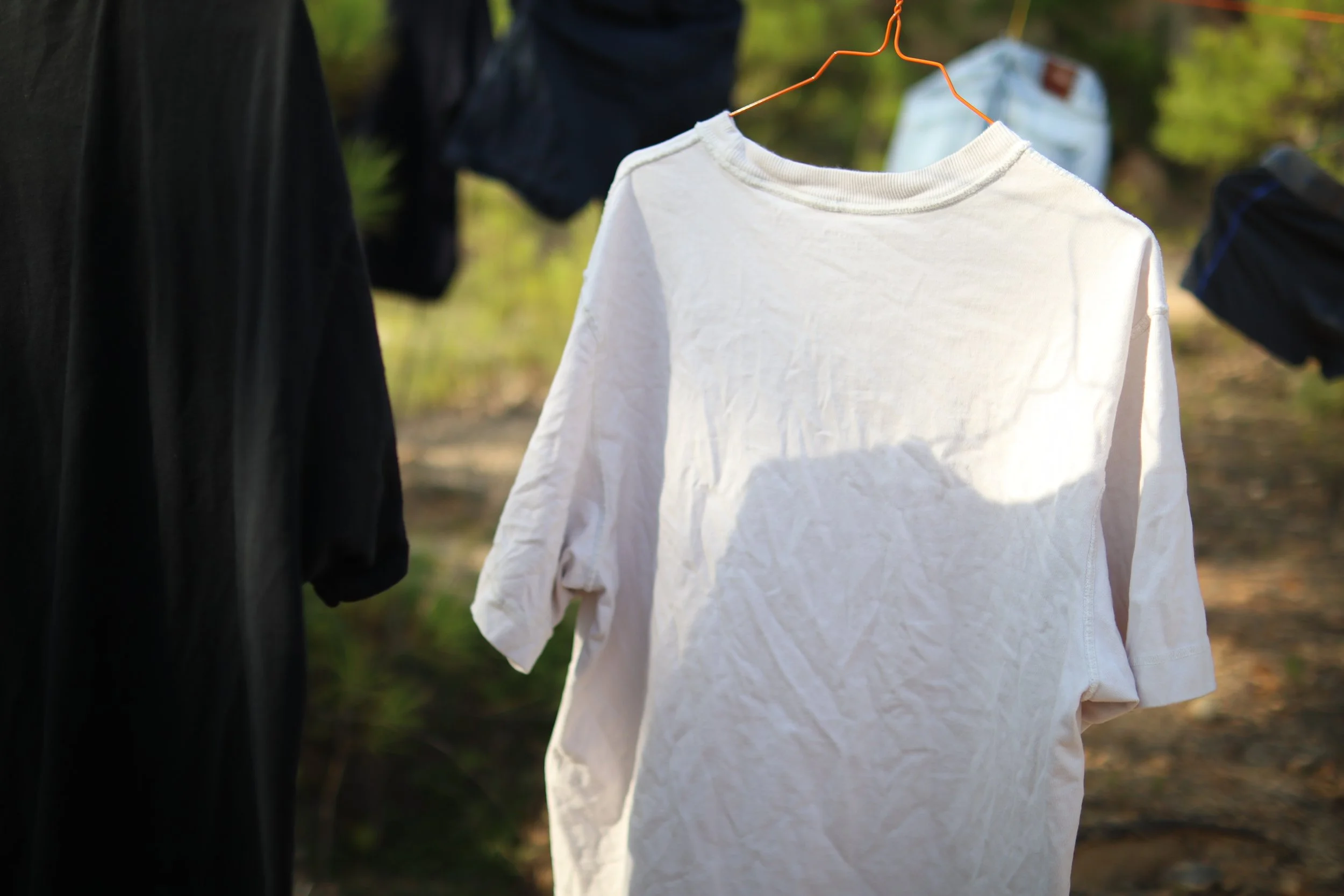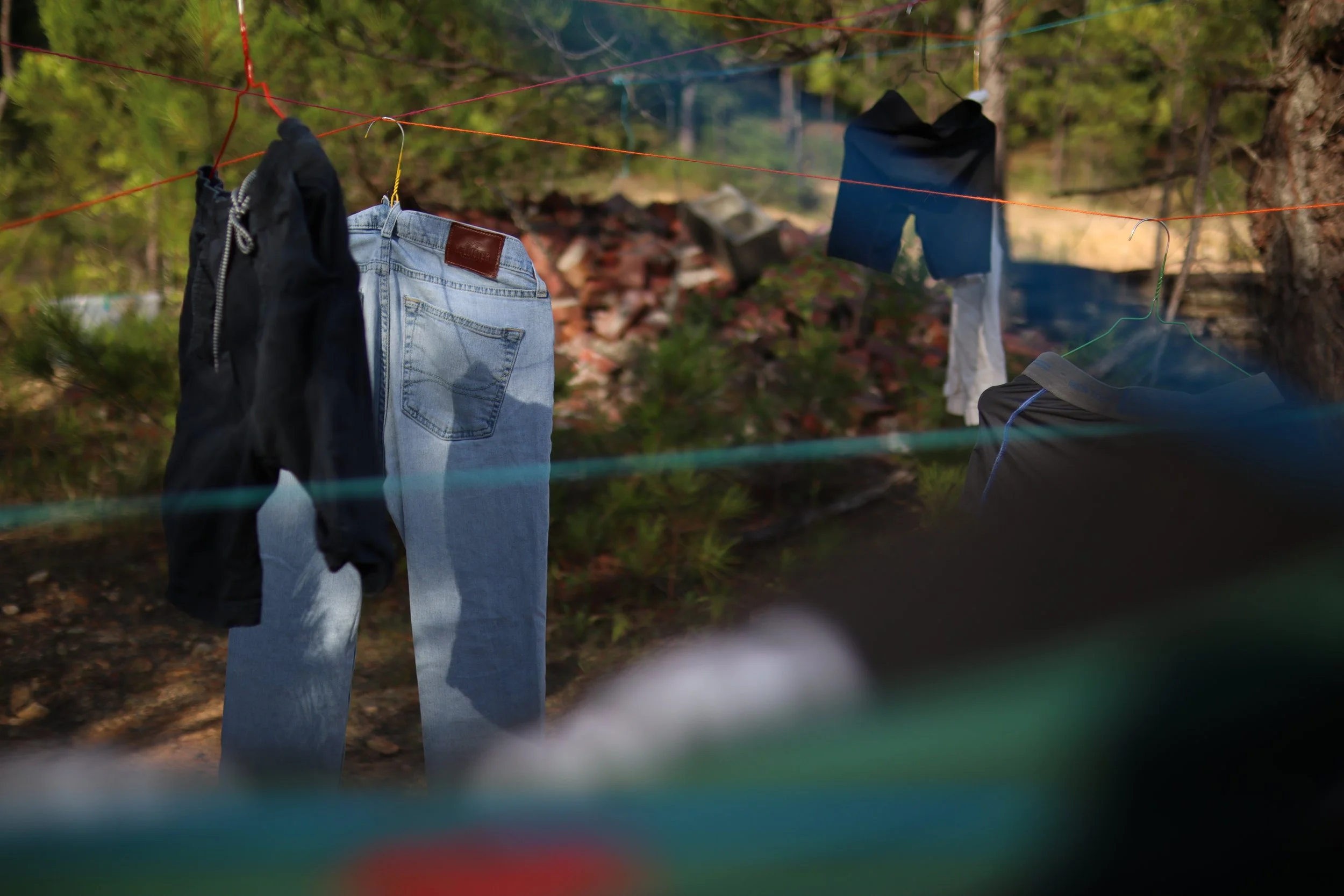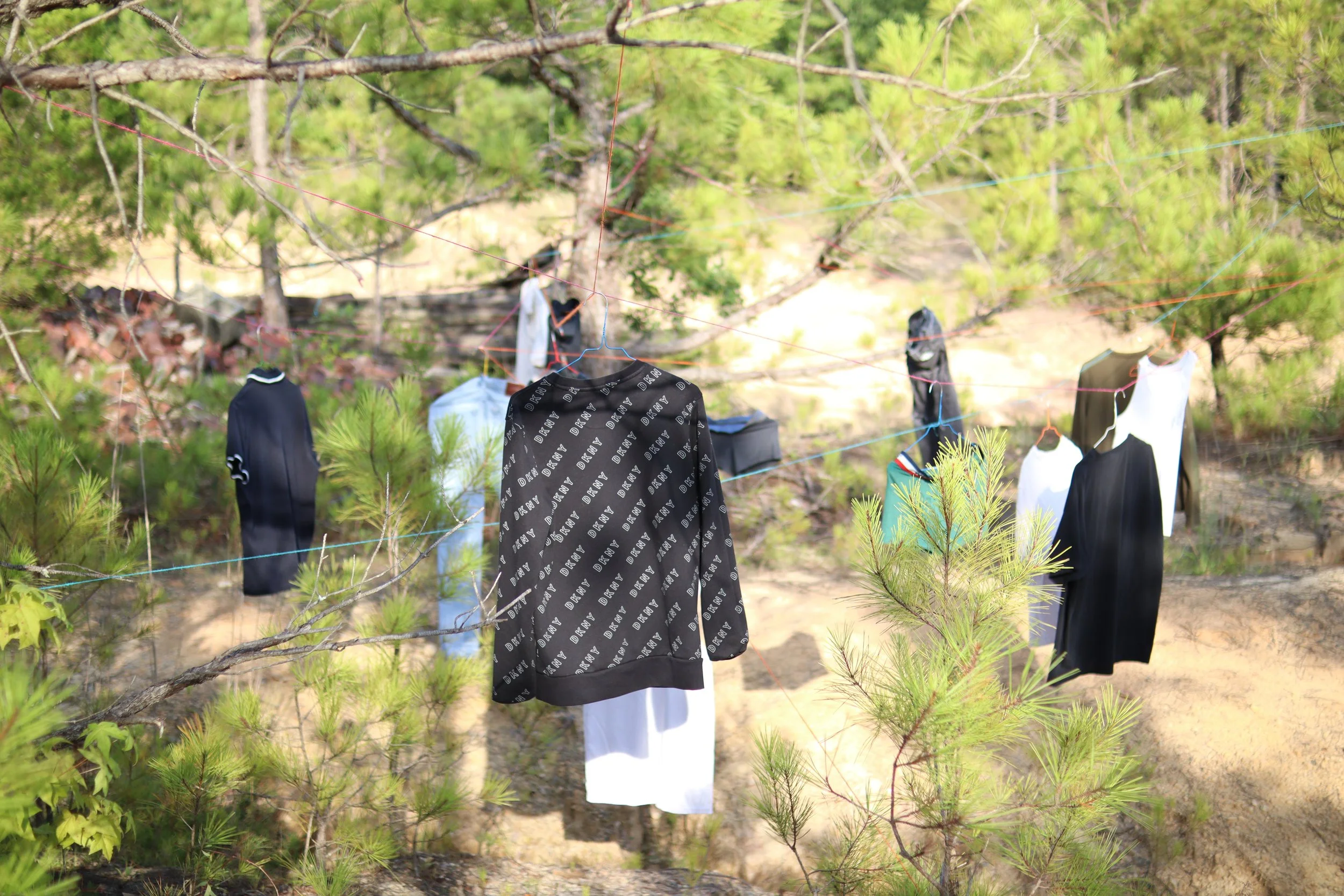 Abandoned. Used to Be His is a site-specific installation composed of garments once exchanged or gifted by my formal lovers. Hung across a barren, eroded landscape among young pine trees, the clothes float in open air like quiet remnants of intimacy and memory. By placing these personal objects in nature—exposed, weathered, and distant from domesticity—the work reflects on themes of love, loss, and emotional residue. The installation becomes a quiet act of mourning and release, evoking the vulnerability of queer attachment and the bittersweet traces left behind.